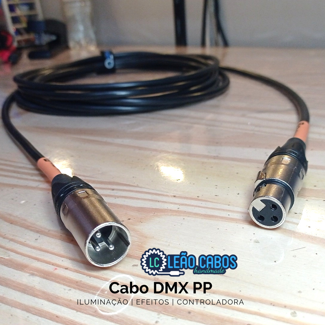 Montado com cabo tipo PP 3x0.50mm² SEM blindagem e com capa protetora para altíssima durabilidade e flexibilidade - de uso EXCLUSIVO para DMX - não serve pra áudio nem microfone, muito menos para transmitir energia.